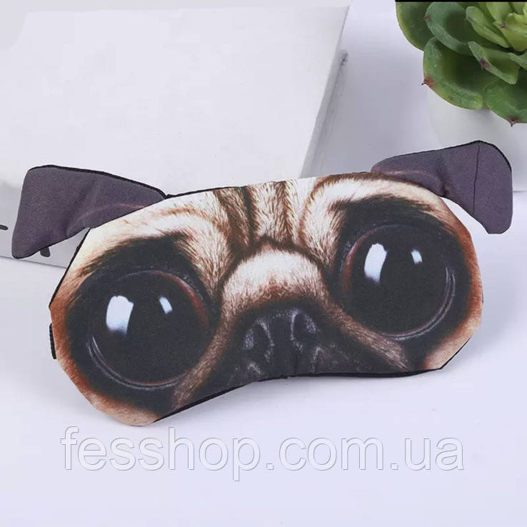 Маска для сну з принтом "Мопс". Зручна та ніжна маска для спокійного сну в будь-яку пору доби.